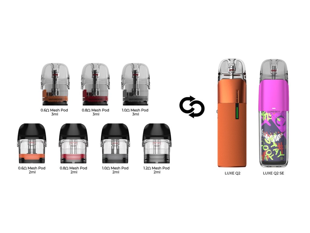 Náhradní cartridge pro elektronickou cigaretu Vaporesso LUXE Q2 Pod a další zařízení disponuje základním objemem 3ml. Jedná se o kompletně vybavenou cartridge disponující integrovaným žhavící hlavou s moderním mesh pletivem pro skvělé podání chuti, rychlý náběh žhavení a optimální produkci páry. Cartridge lze použít jak se standardními nikotinovými a beznikotinovými náplněmi s poměrem PG50/VG50, tak také s náplněmi s nikotinovou solí. Disponuje pohodlným bočním plněním se silikonovou záslepkou.