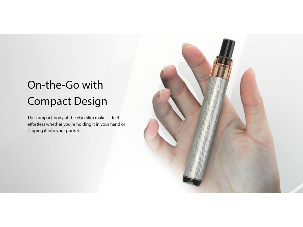 Joyetech eGo Slim Pod Kit spojuje elegantní zpracování s tradičním designem a užitečnými prvky moderních pod systémů. Tato praktická e-cigareta se pyšní nejen solidní kapacitou baterie, ale také moderně zpracovanou LED indikací stavu, funkcí regulace airflow nebo moderním automatickým spínáním bez použití jakéhokoliv tlačítka. O skvělý chuťový požitek se postará cartridge z platformy eRoll Slim s možností výměny náustku, lze použít jak klasický plastový, tak také stylový filtrový náustek, jenž usnadní přechod na vaping. V jednoduchosti je krása, o tom vás přesvědčí už při prvním použití.