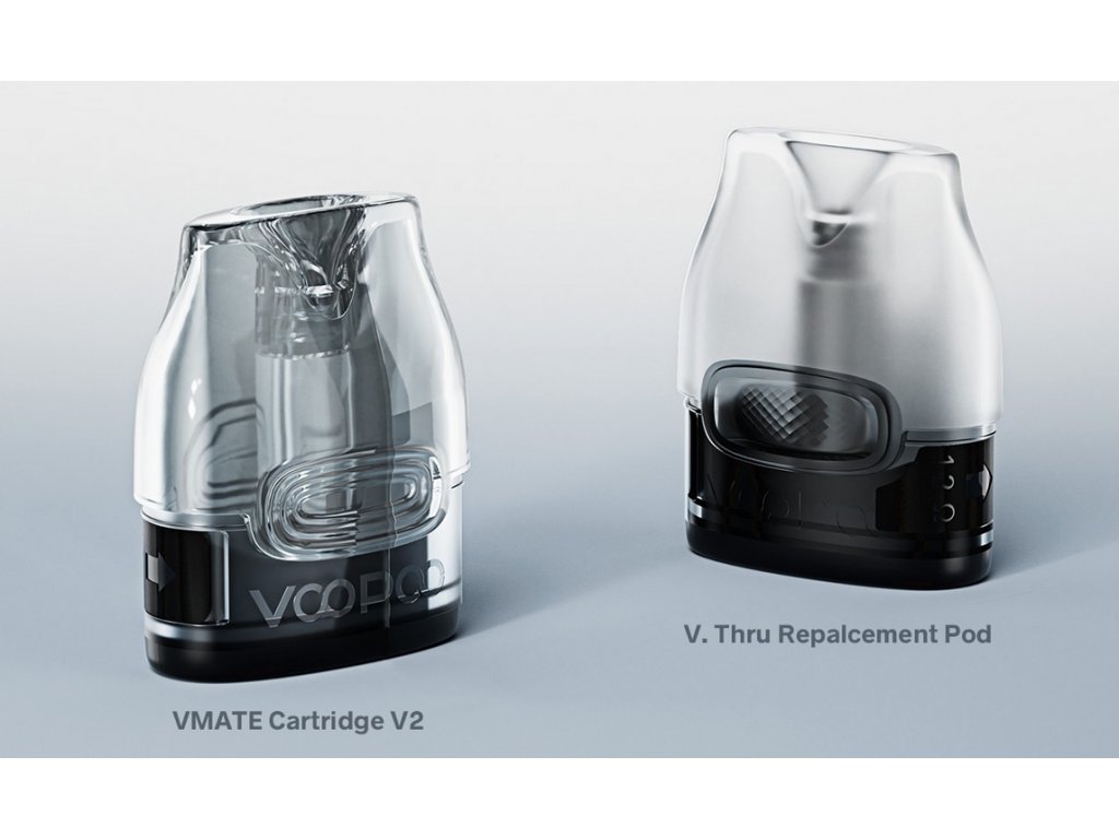 Cartridge Vmate V2: Nové cartridge ze série VMATE s označením V2 nabídnou objem 3 ml a pohodlné boční plnění se silikonovou záslepkou. V základním balení na vás čekají obě dvě cartridge s označením V2, první disponuje odporem 0,7 ohm a je určena pro vzdušnější MTL. Druhá cartridge potom nabídne odpor 1,2 ohm a je vhodnější pro utaženější šlukování. Ve vrchní části cartridge na vás potom čeká ergonomicky tvarovaný náustek, který kopíruje tvar úst a perfektně se drží během potahování.