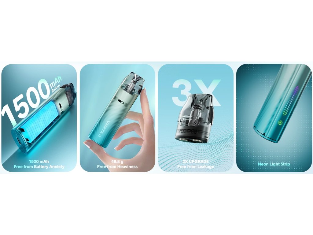 VOOPOO VMATE i3, pokračovatel úspěšné řady VMATE i2, nyní s modernizovaným designem a vylepšenou cartridgí 3X Top Fill. Díky inovacím nabízí čistší chuť, delší životnost spirálky a pohodlnější horní plnění oproti předchozí generaci. Nový i3 model je lehký a zároveň výkonný POD systém navržený pro snadnou přenositelnost a stabilní výkon. Integrovaná baterie s kapacitou 1500mAh nabízí výstup v rozmezí 5–30W se Smart Match technologií, která automaticky přizpůsobuje výkon podle použité cartridge. Díky hmotnosti pouhých 49,8g je zařízení kompaktní a pohodlné pro celodenní nošení. Nová cartridge VMATE Top Fill 3X přináší trojí zlepšení – konzistentnější chuť, vyšší odolnost proti protékání a delší životnost spirálky až na 90ml e-liquidu. Neonový světelný proužek slouží jako samostatný indikátor stavu baterie (zelená/modrá/červená), zatímco přesně nastavitelný airflow umožňuje přizpůsobení potahu od MTL po RDL. Díky rychlému nabíjení přes USB-C (5V/2A) a hornímu plnění je VMATE i3 uživatelsky přívětivý jak pro začátečníky, tak pro zkušené vapery.