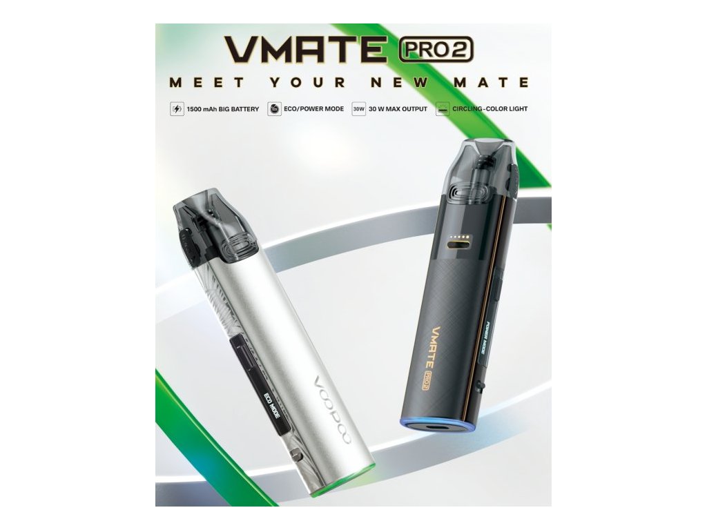 VOOPOO Vmate Pro 2 je chytrý pod systém nové generace v rámci oblíbené série Vmate, který spojuje elegantní design s výkonnými vylepšeními. Disponuje vestavěnou 1500mAh baterií, maximálním výkonem 30W a dvěma režimy potahu – ECO pro úsporný chod s inteligentní regulací výkonu a POWER pro ruční nastavení a intenzivní produkci páry. Zařízení je vybaveno 3ml cartridgí s horním plněním a ochranou proti protékání, 0.54" OLED displejem a plynulou regulací airflow, díky čemuž si jej užijí jak příznivci MTL, tak i RDL stylu vapování.