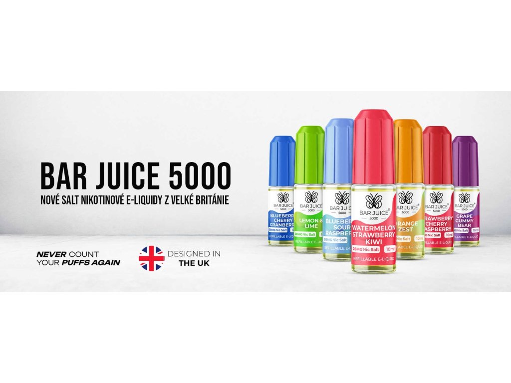 Bar Juice - Bar Juice je britská prémiová značka specializující se na výrobu e-liquidů nejvyšší kvality. Značka se proslavila díky dokonalé imitaci chutí populárních jednorázových elektronických cigaret v opakovaně použitelném formátu. Všechny produkty jsou vyráběny zkušenými odborníky v oblasti vapingu ve Velké Británii.