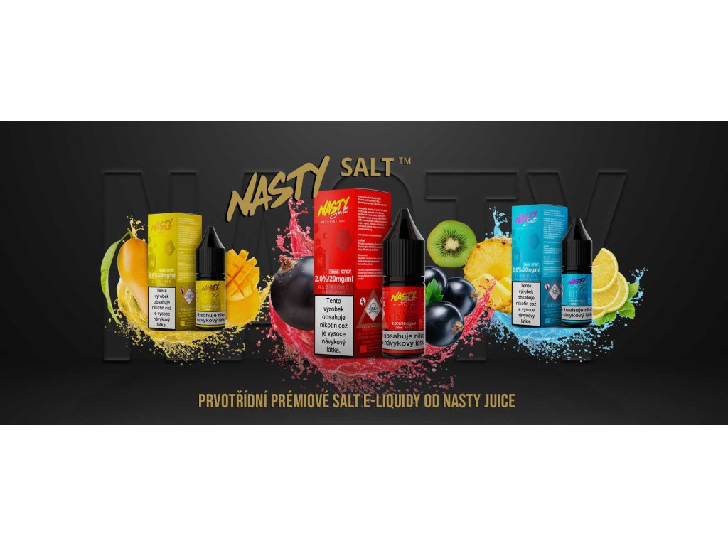 Samotnou předností náplní do elektronických cigaret značky Nasty Juice Nasty LIQ je to, že obsahují dnes velmi oblíbenou nikotinovou sůl (Nic.Salt) a jejich dokonale věrného podání chuti, což přináší ještě větší požitek z vapování. Každá jednotlivá příchuť je pečlivě propracovávána do posledního puntíku, dokud nedosáhne požadované věrnosti. Oproti běžnému nikotinu u klasických e-liquidů nabízí náplně s nikotinovou solí hned několik výhod. Zatímco klasické e-liquidy mají silnější hit, který vám brání v inhalaci většího množství nikotinu, nikotinové soli dávají při stejné síle nikotinu mnohem slabší hit. V jednom potahu je tak možné do těla dostat větší dávku nikotinu, která bude pocitově podobná klasickým cigaretám. Odpadá tak nutnost nepřetržitého potahování e-cigarety a i s menšími pod systémy je možné bez problému uspokojit touhu po nikotinu.