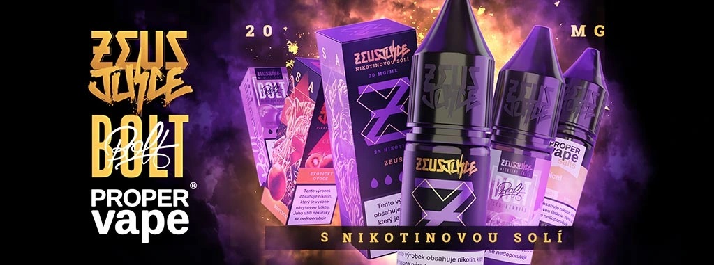 Společnost Zeus Juice přichází se zbrusu novými salt-nikotinovými e-liquidy. Jedná se o jediněčné série ZEUS, Proper Vape a BOLT, které nabízí vyvážený poměr ceny a kvality. Všechny tyto hotové e-liquidy jsou dodávány v 10ml lahvičkách, které obsahují 20mg nikotinu.