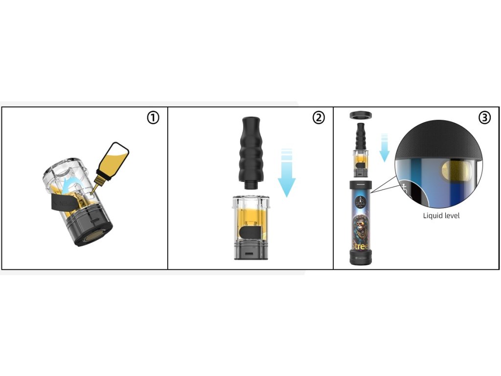 Zatímco průhledný prostor pro zobrazení hladiny e-liquidu je příjemným doplňkem, lepší viditelnosti lze dosáhnout vyjmutím cartridge pro rychlou kontrolu liquidu.