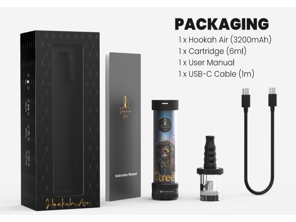 Výkon páry a vynikající chutě: Hookah Air je dodáván s 0,4 ohmovou cartridge, která nabízí významnou produkci páry pro omezenou přímou inhalaci. Příchutě jsou výjimečné, vhodné pro různé e-liquidy, od těch nejlahodnějších až po ty nejovocnější.