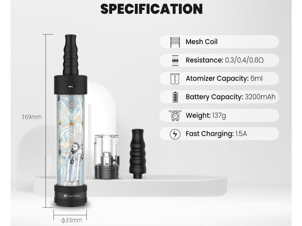 Inteligentní osvětlení: Pro milovníky gadgetů se pod rozsvítí při každém použití a dodá každému šluku šmrnc. Funkce, která jistě zaujme uživatele hledající jedinečný vizuální zážitek. Technické vlastnosti vodní dýmky ji řadí mezi špičkové zařízení. Se specifikacemi, jako je nabíjení USB-C, kapacita nádrže 6 ml a automatický režim použití, vyniká svou vynalézavostí a snadností použití.