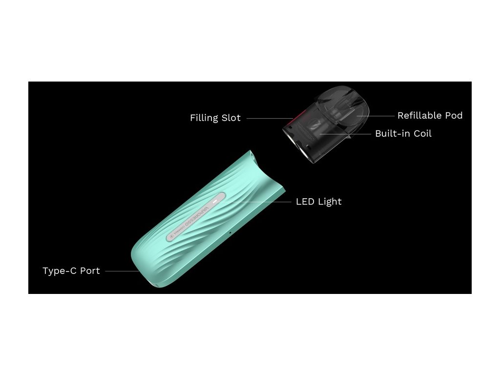 Oblíbená MTL Pod systémová elektronická cigareta od Vaporessa se představuje ve verzi 2. Kovový kryt baterie s vodním vlnitým designem obsahuje monočlánek o kapacitě 450mAh s automatickým spínačem a USB-C portem pro rychlé nabíjení. Vyměnitelná cartridge (POD) se žhavící hlavou o odporu 1,2ohm o objemu 2ml je opatřena technologií SSS Leak-Resistant, která se postará o čisté užívání bez protékajícího e-liquidu a kondenzace. Cartridge je plně kompatibilní s původní verzí.