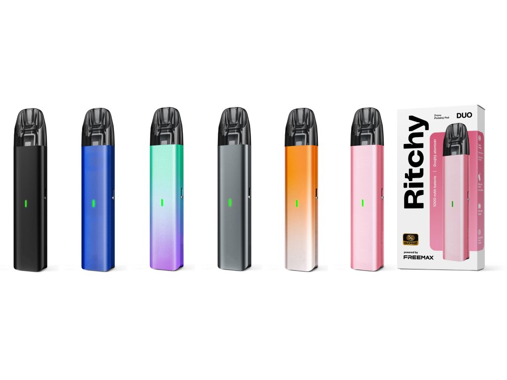 Ritchy Duo Max je ideální volbou pro vapery, kteří hledají rovnováhu mezi výkonem a praktičností. Toto zařízení je vybaveno býkonou baterií s kapacitou 1000 mAh a podporuje vapování MTL i RDL, což poskytuje zážitek přizpůsobený vašemu stylu. S maximálním výkonem 28 W nabízí působivý výkon v kompaktním provedení, ideálním pro celodenní používání. Ritchy Duo Max se také vyznačuje pohodlným nabíjením přes konektor typu USB-C (kabel není součástí balení), což zajišťuje minimální prostoje a rychlé dobíjení. Stylová, spolehlivá a snadno použitelná, je skvělou volbou pro začátečníky i zkušené vapery.