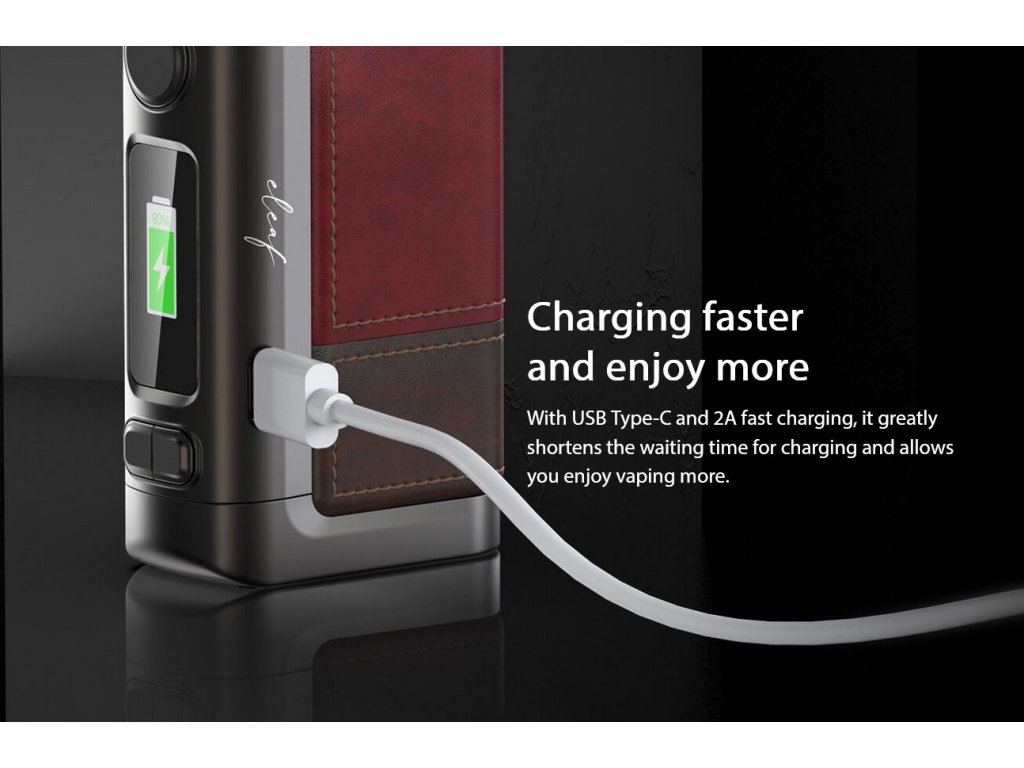 Stylové zpracování: Eleaf iStick Power 2 nabídne nádherné designové zpracování. Celý mod je vyvedený v kovovém rámu, který je potažený v bočních částech a v zadní části kůží s jedním z mnoha motivů. Elegantní grip se hodí pro každodenní využití, ale také do společnosti na příležitostné události. Celé zařízení je navíc příjemně bytelné a pohodlně se používá.