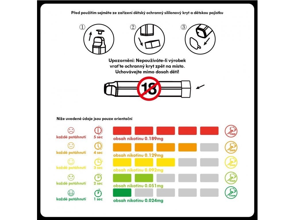 Chuť zařízení VENIX je zcela jedinečná a propracovaná. Těšit se můžete na perfektní podání a autenticitu, která se vyrovná těm nejlepším na trhu. S neuvěřitelnou výdrží okolo 700 potahů a kapacitě baterie 400mAh si zařízení můžete užívat klidně déle jak jeden celý den, což je v segmentu jednorázovek nádherné číslo. S obsahem nikotinu 18mg/ml pak nabídne VENIX nikotinovou satisfakci absolutně všem vaperům, od nováčků po matadory. Obsluha zařízení je pak stejně jednoduchá, jako je jednoduchá u ostatních zařízení tohoto typu. Jednoduše po rozbalení sejměte silikonové chrániče a můžete potáhnout. Po ukončení životnosti baterie zařízení jednoduše vyhoďte/zrecyklujte a začněte používat nové.