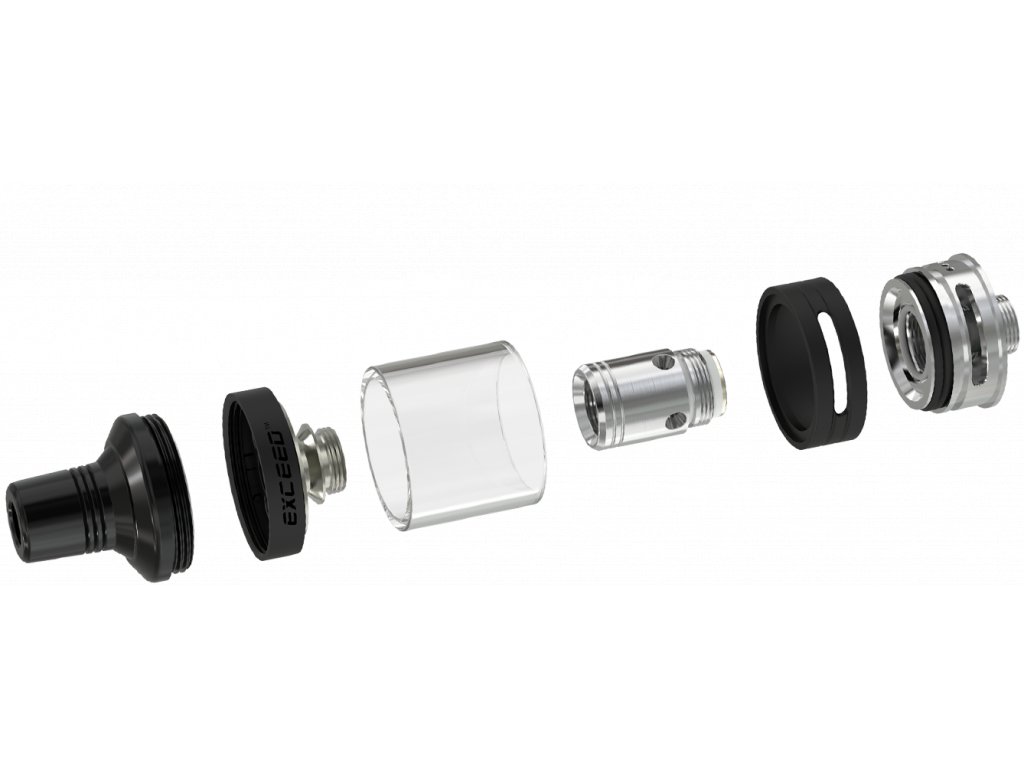 Elektronická cigareta Exceed D19 přináší pohodlné vapování s režimy konstantního a výstupního napětí. Tradiční tvar baterie představuje novinku v podobě horního LED indikátoru stavu nabití baterie (viz foto). Clearomizer Exceed o průměru 19mm spolupracuje s atomizery řady EX, které přinášejí dokonalou souhru autentické chuti liquidu a velké kouřivosti. Využívá systém horního plnění - po odšroubování vrchní části plníte liquid přímo do těla clearomizeru o objemu 2ml. Žhavicí hlavy EX nabízí dva odpory 0.5ohm (přímé potahování) a 1.2ohm pro ústa-plíce. Celý clearomizer je plně rozebíratelný = snadná údržba. Regulace přívodu vzduchu pro nastavení optimální kouřivosti se nachází ve spodní části.