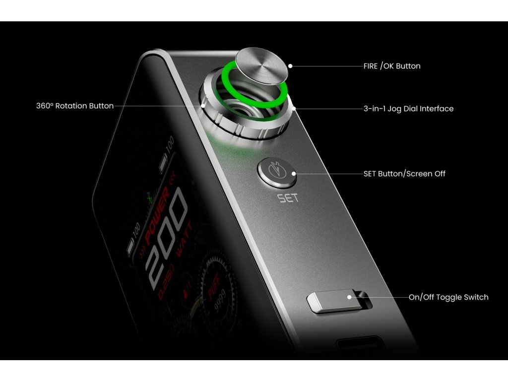 Obrovský barevný displej: Celému modu na první pohled jasně vévodí živelný obrovský TFT displej v boční části. S úhlopříčkou 2.4" budete mít všechny potřebné informace ihned k dispozici a díky skvělému jasu je vždy všechno krásně čitelné. Lost Vape Centaurus BT200 je box mod pro ty nejnáročnější, kteří si potrpí na bezproblémové a hladké ovládání a prestižně vyhlížející zařízení. S modem se vždy zaručeně odlišíte a získáte něco zcela výjimečného.