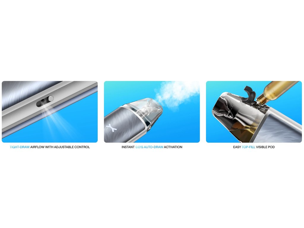 OXVA NeXLiM GO představuje moderní pod systém s důrazem na výkon, výdrž a chuť. Díky technologii Dual Mesh poskytuje až 200 % lepší chuť a životnost ve srovnání s běžnými cartridgemi. Výkonná baterie 1800mAh zajišťuje až 10 dní provozu v ECO režimu, s rychlým 5V/2A USB-C nabíjením. Přepínání mezi režimy BOOST a ECO přináší 6 různých vaping zážitků (0.6ohm / 0.8ohm / 1.2ohm), pro styl MTL i RDL. Zařízení je kompatibilní s všemi NeXLiM cartridgemi i žhavicími hlavami a podporuje jak Freebase nikotin tak i Nikotinové soli.