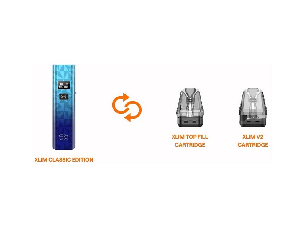 Plně kompatibilní s cartridgemi Xlim: O co nejlepší chuť se u modelu Xlim Classic Edition postarají populární cartridge Xlim V3. V základním balení najdete rovnou dvě, první nabídne odpor 0,6 ohm a je vhodná pro vzdušnější MTL potah nebo pro RDL vaping. Druhá cartridge s odporem 0,8 ohm najde využití u milovníků tradičního MTL. Zařízení je kompatibilní s kompletními platformami cartridgí Xlim, můžete si proto k modelu pořídit libovolný odpor cartridgí podle svých potřeb.