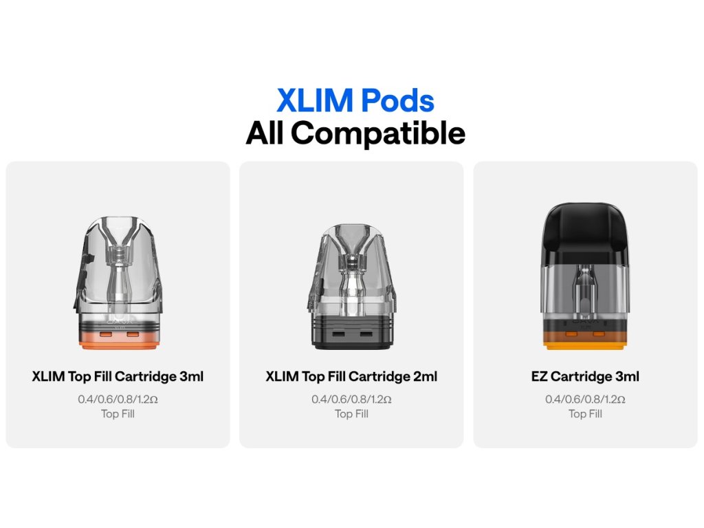 Platforma Xlim - OXVA Xlim Pro 3 je plně kompatibilní s oblíbenými cartridgemi z platformy Xlim, můžete tak volit ze široké nabídky různorodých odporů a typů.