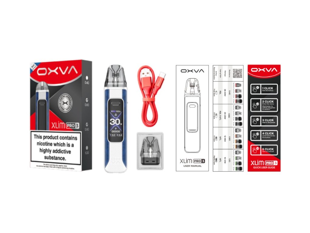Dlouho očekávaná třetí generace Xlimu Pro od značky OXVA je konečně tady. Připravte se na strhující designové provedení s ohromným HD displejem, navýšenou kapacitu integrované baterie a kompatibilitu s oblíbeným typem cartridgí Xlim. Nově jsou také k dispozici hned dvě metody spínání, můžete tak využívat funkci autopotahu nebo pro žhavení tisknout tlačítko. OXVA Xlim Pro 3 přináší mnoho vylepšení a definuje pokrok celé značky OXVA.