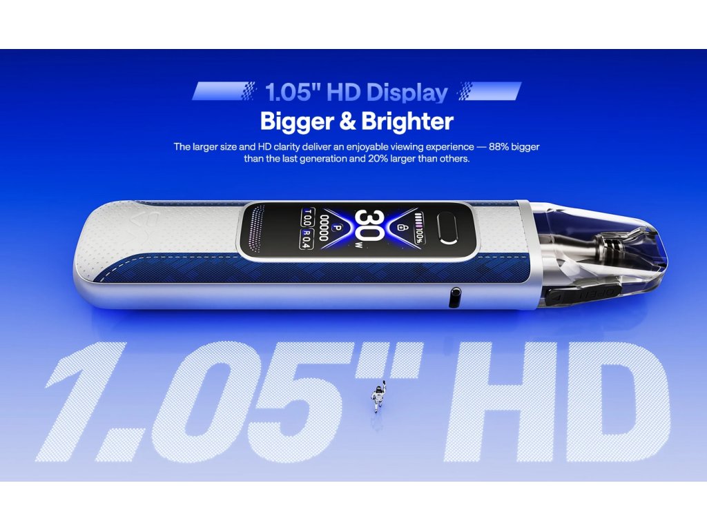 Čitelnost ve dne i v noci - Displej je u modelu Xlim Pro 3 nejen větší, ale také mnohem jasnější a jemnější. S úžasným jasem 300 nitů je displej daleko živější, než kdy předtím. Umožňuje tak pohotové nastavení i ovládání uvnitř nebo venku a ve dne nebo v noci. S nastavením nebudete mít problém ani na přímém slunci, což ocení řada uživatelů, kteří vapují venku a zařízení používají pravidelně.