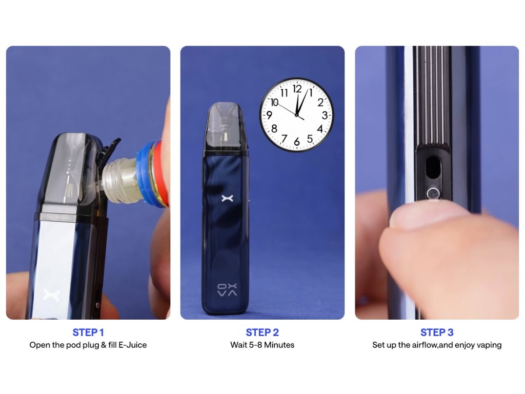 Upozornění: Před prvním použitím doporučujeme nalít e-liquid do cartridge a vyčkat několik minut, tak aby vata uvnitř cartridge byla dostatečně nasátá.