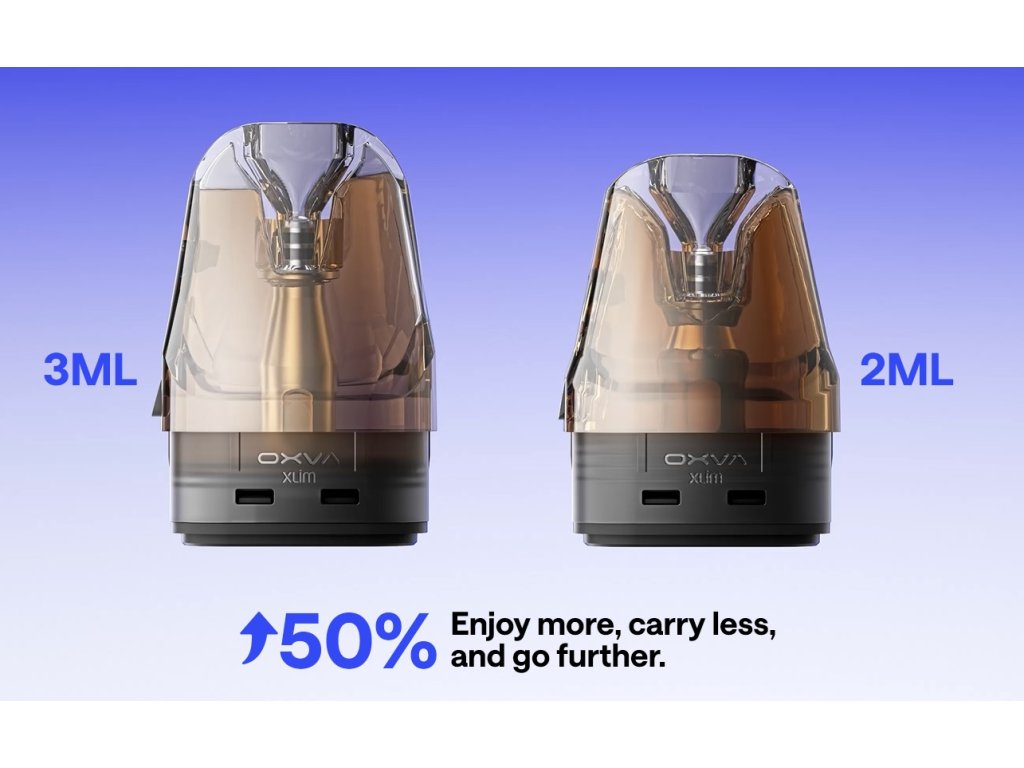 Náhradní cartridge OXVA Xlim Top Fill v novém provedení disponuje zvětšeným objemem 3ml. Jedná se o kompletně vybavenou cartridge disponující integrovanou žhavící hlavou s moderním mesh pletivem pro skvělé podání chuti, rychlý náběh žhavení a optimální produkci páry. Jedná se o upgradovaný typ cartridge s označením Top Fill, cartridge nabídne pohodlnější plnění se silikonovou záslepkou v boční části, která nezasahuje do těla baterie, je tedy možné doplňovat cartridge připojenou k tělu baterie. Cartridge lze použít jak se standardními nikotinovými a beznikotinovými náplněmi s poměrem PG50/VG50, tak také s náplněmi s nikotinovou solí. Doporučený rozsah výkonu pro používání této cartridge činí 10 - 12W.