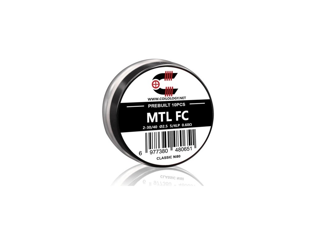 Předmotané spirálky Coilology MTL FC (Fused Clapton) Ni80 jsou vysoce kvalitní spirálky určené k instalaci do DIY atomizérů. Spirálky jsou vyrobeny z Nichromu Ni80. Jedná se o provedení typu Fused Clapton, jádro spirálky tvoří dva odporové dráty, které jsou obmotané druhým tenkým drátem. Předmotané spirálky z materiálu Ni80 lze používat v režimech výkonu, nefungují v teplotních režimech.