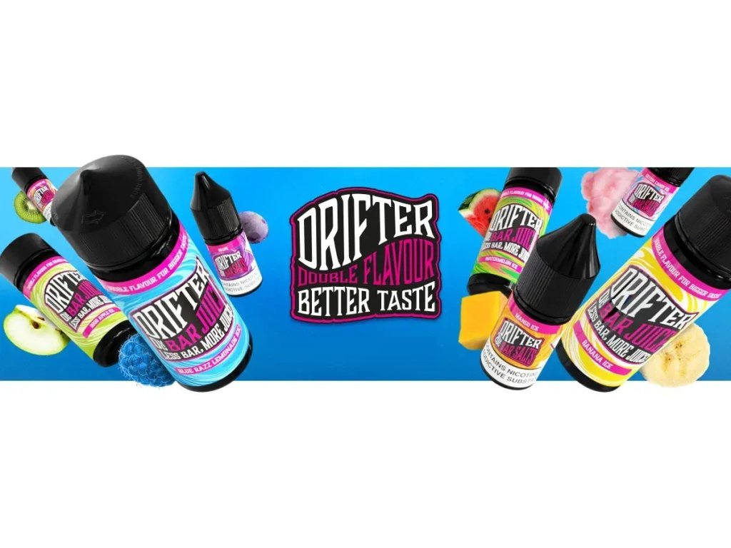 Prémiové britské e-liquidy Drifter Bar od Juice Sauz nyní i jako příchutě S&V. Jsou dodávány v 30ml lahvičkách, které obsahují 6ml koncentrátu. Uživatel tak pouze přidá bázi do lahvičky, zatřese s ní a má hotový e-liquid. Výroba probíhá za nejpřísnějších hygienických standardů ve farmaceutické laboratoři. Jedná se o koncentrát, který se kape do báze. Příchuť může být použita pouze jako aroma do bází. Nejedná se o hotový e-liquid.