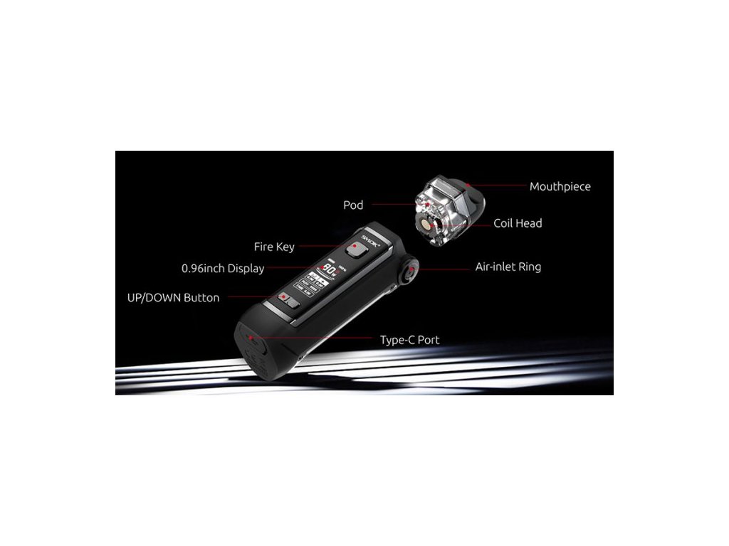Smoktech IPX 80 je kombinací odolného gripu a výkonného POD systému. Odolnost IP67 zaručuje odolnost vůči nechtěným pádům a vniknutí vody či prachu do zařízení. Integrovaná baterie o kapacitě 3000mAh disponuje nastavitelným výkonem až 80W. Ergonomické tělo z nerez oceli a kůže zdobí 0,96 palcový displej, který umožňuje jednoduché nastavení hodnot a zobrazuje všechny potřebné informace. Baterii lze jednoduše nabít pomocí USB-C portu, který poskytuje rychlé nabíjení. Mezi jeho další přednosti patří ochrana proti zkratu, přehřátí a podbití, či 8-mi vteřinová ochrana žhavení. IPX 80 nabízí cartridge pro žhavicí hlavy RPM 2 s jednoduchým bočním plněním o objemu 5,5ml. Na boční straně gripu najdete kolečko pro optimální nastavení přívodu vzduchu.