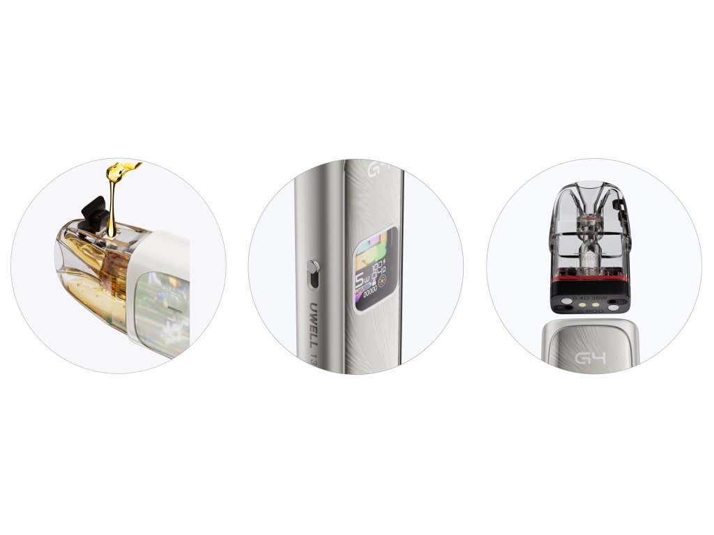Chuť nadevše! S tímto sloganem vychází již čtvrtá generace moderní série Caliburn G od renomované značky Uwell. Pod systém Uwell Caliburn G4 Pod Kit je ideálním řešením pro ostřílené profíky, tak také pro naprosté začátečníky. Hlavní předností nové generace je zejména upgradovaná technologie chuti PRO-FOCS 4.0 a intuitivní ovládací prvky pro co nejchutnější požitek z vapování a snadné každodenní využití. Model je pokročilou ukázkou inovativního a tvůrčího inženýrství společnosti Uwell a díky prvkům, jako je velký barevný HD displej, moderní uživatelské rozhraní, dvojitá regulace airflow a dva výstupní režimy si užijete nekonečné hodiny zábavy a chutného potahování ve stylech MTL a RDL. Špičkově navržený Uwell Caliburn G4 přináší pokrok v každém směru.