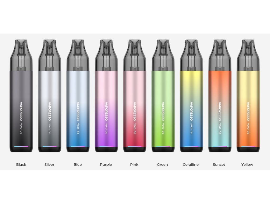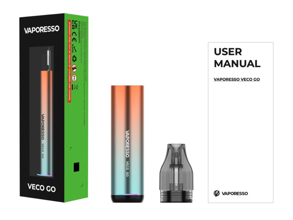 Elektronická cigareta Vaporesso VECO GO je perfektní vapovací zařízení ve stylu pera pro začátečníky, kteří hledají jednoduchost bez kompromisů v kvalitě vapingu. Elegantní a stylový designe baterie disponuje vestavěným monočlánkem o kapacitě 1500mAh s rychlonabíjením typu USB-C 5V/2A a automatickým výkonem až 25W. Vyměnitelná cartridge (POD) je vybavena žhavící hlavou o odporu 0,6ohm a 0,8ohm s objemem nádržky 5ml. Díky magnetickému propojení s baterií lze cartridge jednoduše vyjmout a doplnit oblíbeným liquidem. VECO GO využívá technologii zahřívení spirálky COREX, která zajišťuje přesné podání chuti a delší životnost. Magnetická podložka umožňuje regulaci proudění vzduchu pro optimální nastavení.