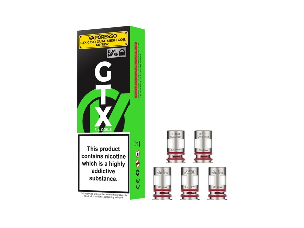 Žhavící hlavy Vaporesso GTX Dual Mesh jsou k dispozici s odporem 0,15 ohmu, 0,2 ohmu a 0,3 ohmu a jsou určeny pro vapování s nízkým odporem a přímým potahováním do plic (DL). Zcela nové žhavící hlavy GTX Dual Mesh se vyznačují dvouvrstvou síťovanou strukturou, která nejen zajišťuje rovnoměrné zahřívání a důkladnější odpařování e-liquidu, čímž se zintenzivní reprodukce chuti a aroma o 25 %, ale také prodlužuje životnost žhavicí hlavy až o 30 %.