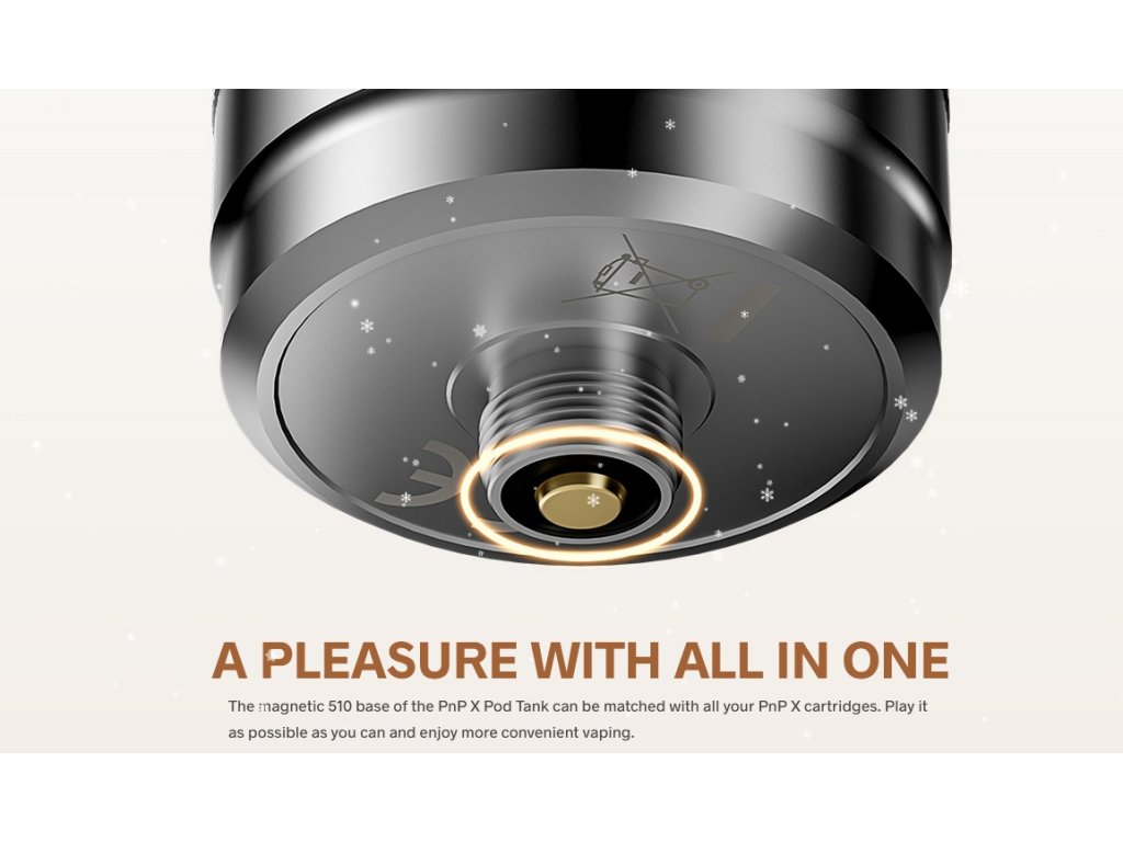Clearomizér (Tank) VOOPOO PnP X je dostupný nejen ve verzi samotné cartridge, ale také v podobě tanku. To je možné díky speciální kovové základně s klasickým 510 závitem, do které se pod jednoduše zasune a ve které drží pomocí magnetů. Díky tomu si můžete VOOPOO PnP-X Tank užít nejen v Drag X2 / S2 módu, ale v podstatě v jakémkoliv jiném módu s dostatečným výkonem a místem pro 26mm tank v průměru.