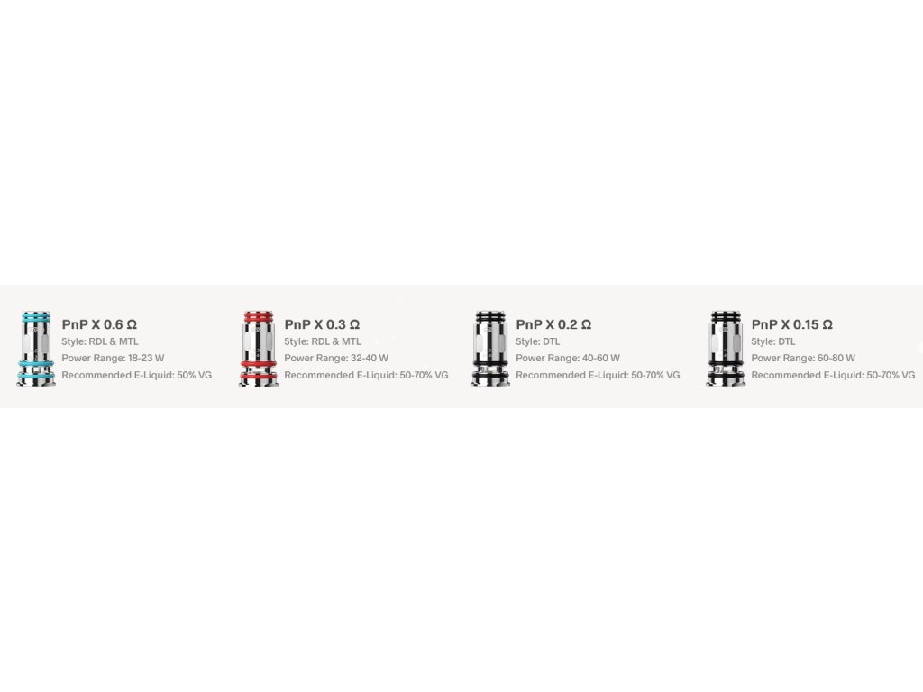 Kompatibilní: žhavící hlavy VOOPOO ze série PnP-X, nejlépe však s nižším odporem 0,15ohm, 0,2ohm a 0,3ohm.