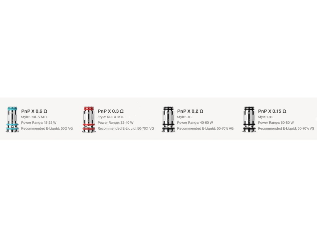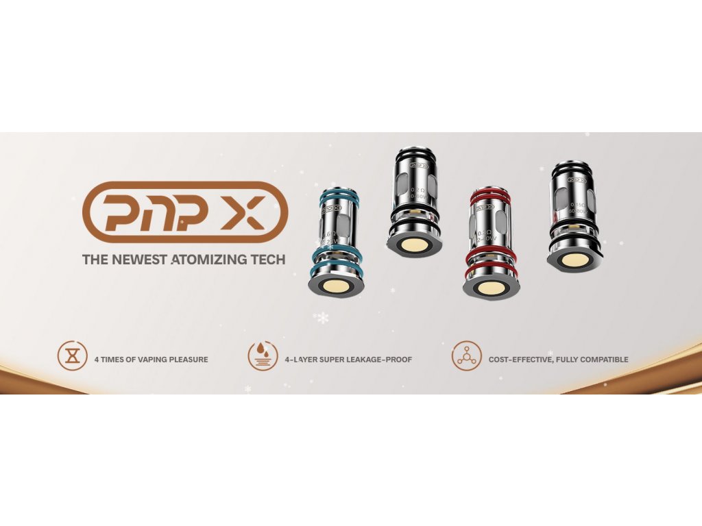 Žhavící hlavy jsou vybaveny nově strukturovanou mesh spirálkou, která nabízí lepší distribuci žhavení a nabízí tak naprosto rovnoměrné odpařování náplně, okamžitý nástup žhavení a větší mraky páry. Nedílnou součástí žhavící hlavy je i organická vata. PnP-X hlavy přichází s termostabilní vatou v optimalizované tloušťce a vrstvení, což výrazně vylepšuje zásobování a absorpci e-liquidu. Zároveň se prodlužuje výdrž vaty a především její výrazné a konzistentní podání chuti.